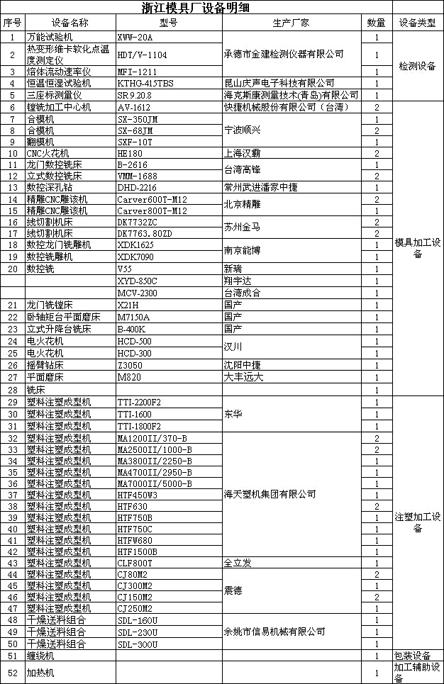 您的位置>>浙江模具厂>>生产实力 >设备清单